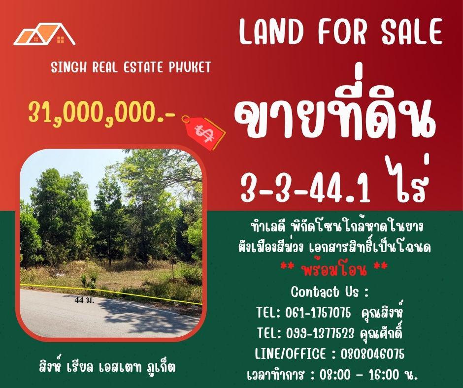 ** LAND FOR SALE ** ขนาดที่ดิน 3-3-44.1 ไร่ ( ในยาง S4 NAIYANG BEACH PHUKET )