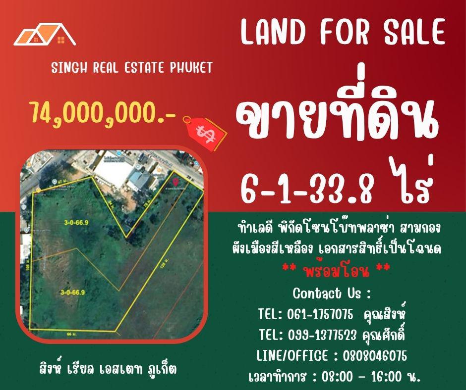 ** LAND FOR SALE ** ขนาดที่ดิน 6-1-33.8 ไร่ ( ติดถนนประชาสามัคคี - โบ๊ทพลาซ่าสามกอง )