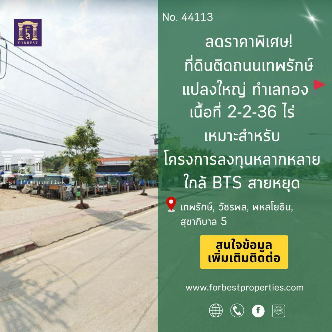 44113 ลดราคาพิเศษ! ที่ดินติดถนนเทพรักษ์ แปลงใหญ่ ทำเลทอง