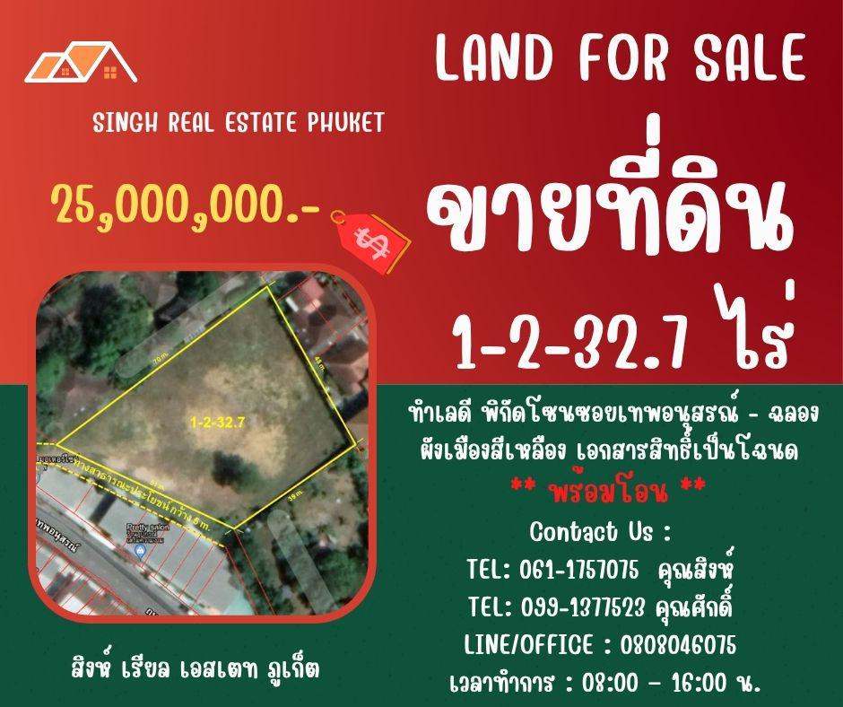 ** LAND FOR SALE ** ขนาดที่ดิน 1-2-32.7 ไร่ ( ซอยเทพอนุสรณ์ - ฉลอง )