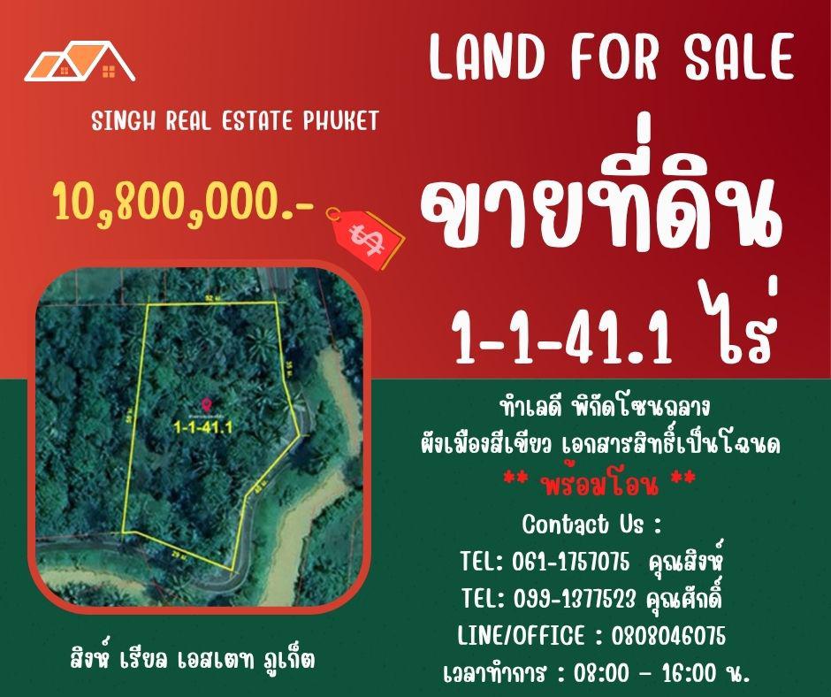 ** LAND FOR SALE ** ขนาดที่ดิน 1-1-41.1 ไร่ ( ติดโครงการพฤกษาพรุจำปา - เทพกระษัตรี )