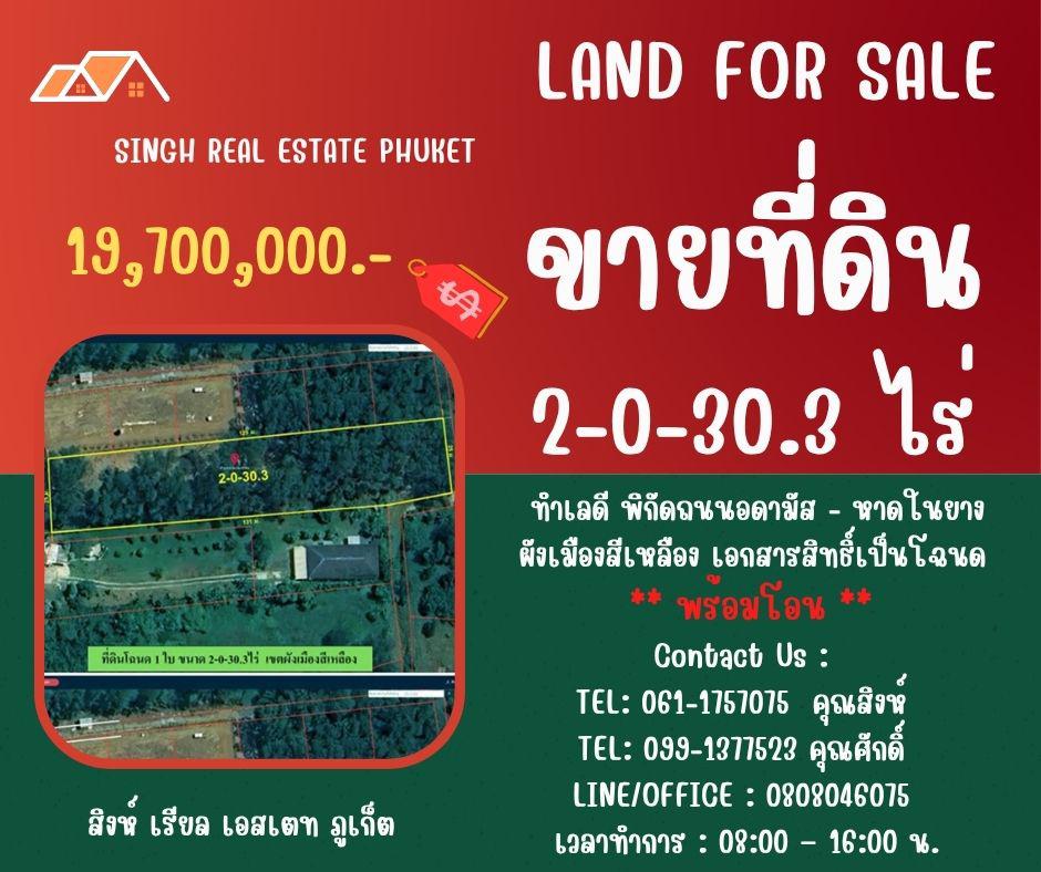 ** LAND FOR SALE ** ขนาดที่ดิน 2-0-30.3 ไร่ ( ถนนอดามัส - หาดในยาง )
