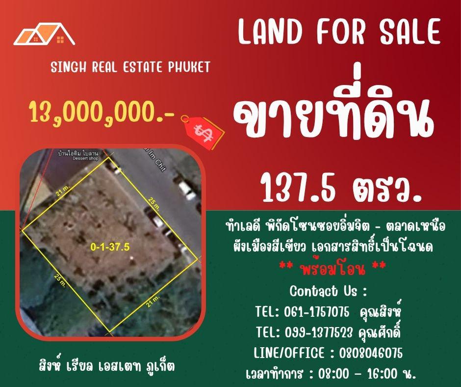 ** LAND FOR SALE ** ขนาดที่ดิน 137.5 ตรว. ( ซอยอิ่มจิต - ตลาดเหนือ )