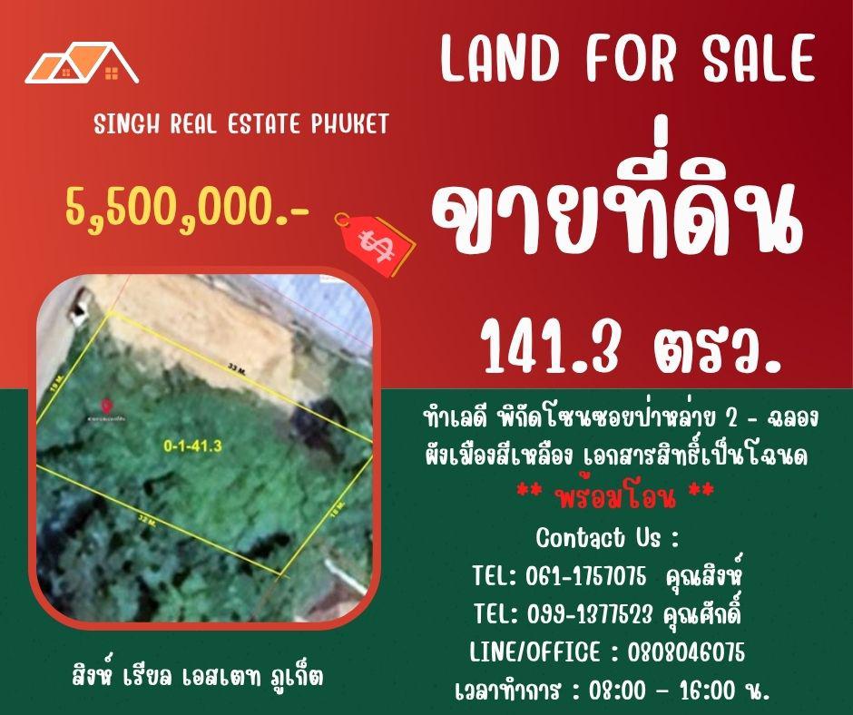 ** LAND FOR SALE ** ขนาดที่ดิน 141.3 ตรว. ( ซอยป่าหล่าย 2 - ฉลอง )