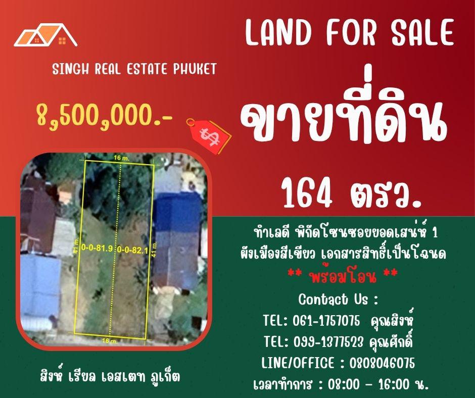 ** LAND FOR SALE ** ขนาดที่ดิน 164 ตรว. ( ซอยยอดเสน่ห์ 1- ฉลอง )