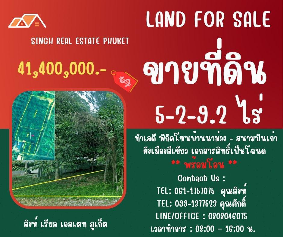 ** LAND FOR SALE ** ขนาดที่ดิน 5-2-9.2 ไร่ ( บ้านนาม่วง - สนามบินเก่า )