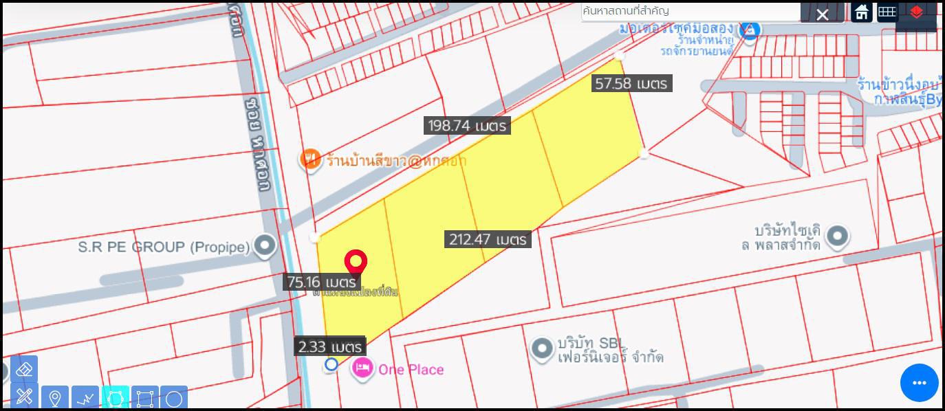 หน้ากว้างติดถนนซอย หกศอก 198.74 เมตร และ 75.16 เมตร