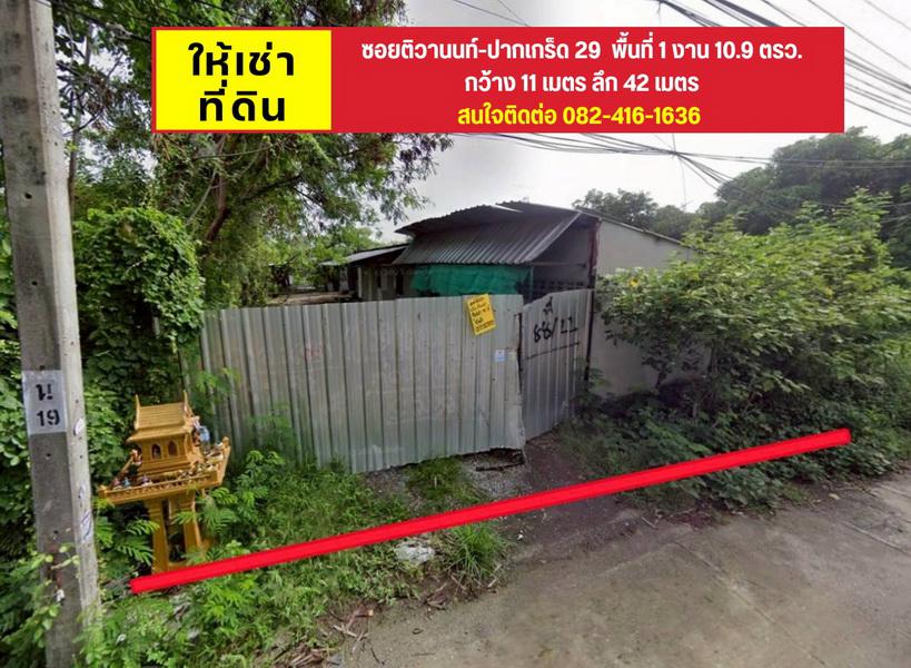 ที่ดินให้เช่า ซอยติวานนท์-ปากเกร็ด29 พื้นที่ 1 งาน 10.9 ตรว. กว้าง 11 เมตร ลึก 42 เมตร