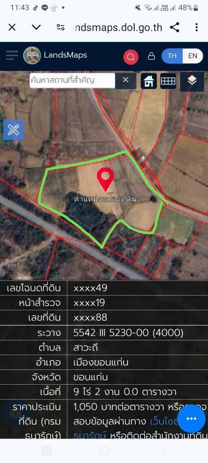 ขายที่ดิน 9-0-50 ไร่ ต่ำกว่าราคาประเมิน ติดถนนลาดยาง ต.สาวะถี อ.เมืองขอนแก่น ไฟฟ้าผ่าน ขายไร่ละ 350,000 บาท