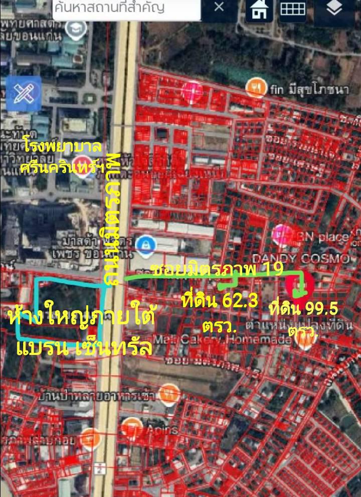 ขายที่ดิน 62.3 ตรว.ราคา 1.9 ล้าน ที่ดิน 99.5 ตรว.ขาย 1.6 ล้าน ซอยมิตรภาพ 19 หน้าโรงพยาบาลศรีนครินทร์ขอนแก่น