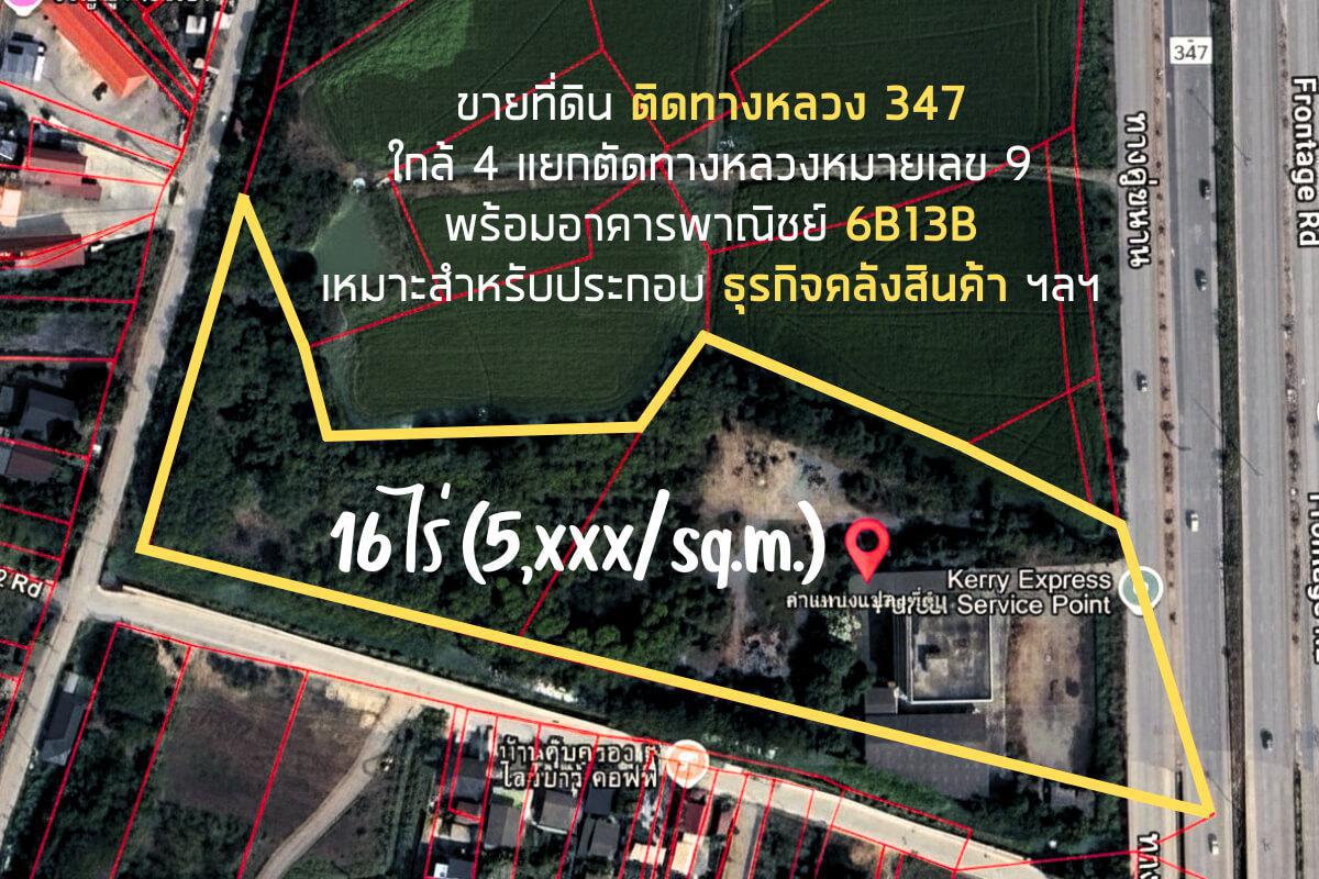 ขายด่วน! ที่ดิน 16 ไร่ พร้อมอาคารพาณิชย์ จอดรถสูงสุด 200 คัน ติดทางหลวง 347 ปทุมธานี บางปะหัน