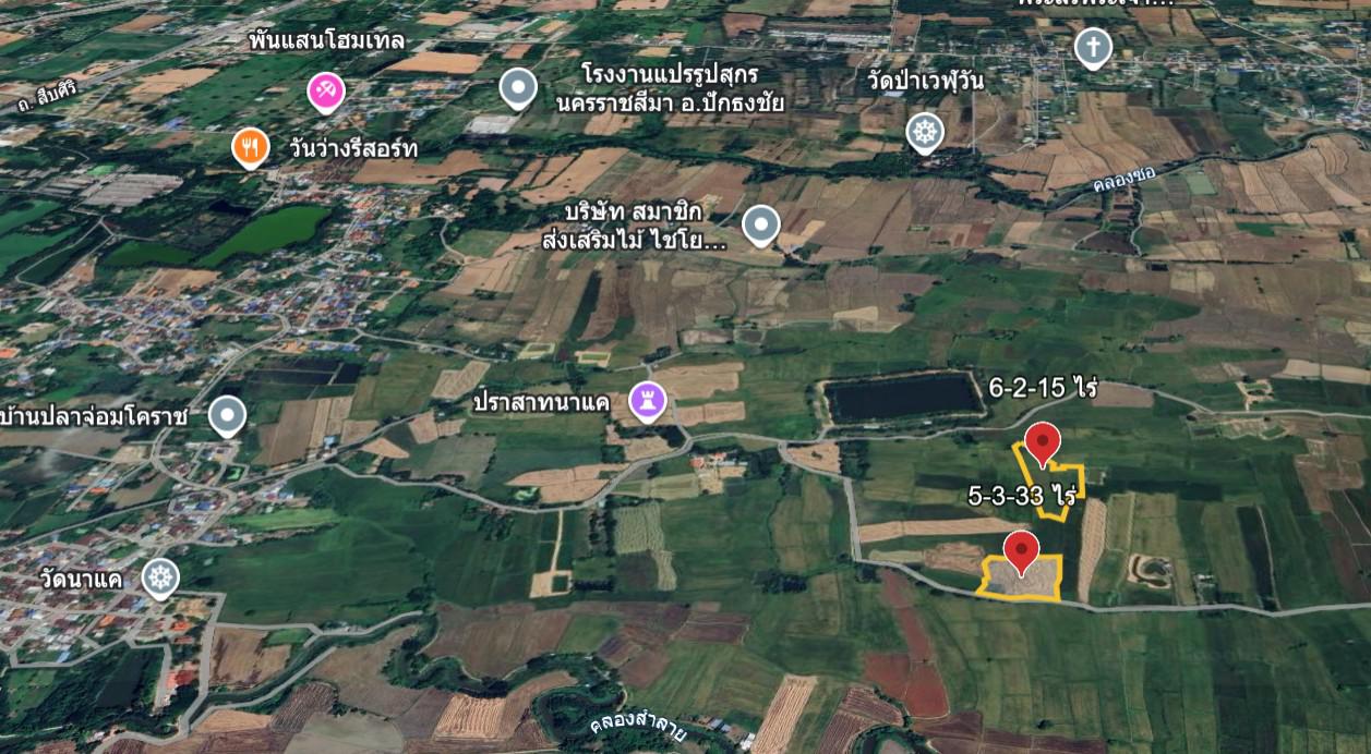 ขายที่ดินตำบลเมืองปัก อำเภอปักธงชัย นครราชสีมา 5-3-33 ไร่ เอกสารโฉนด นส.4จ