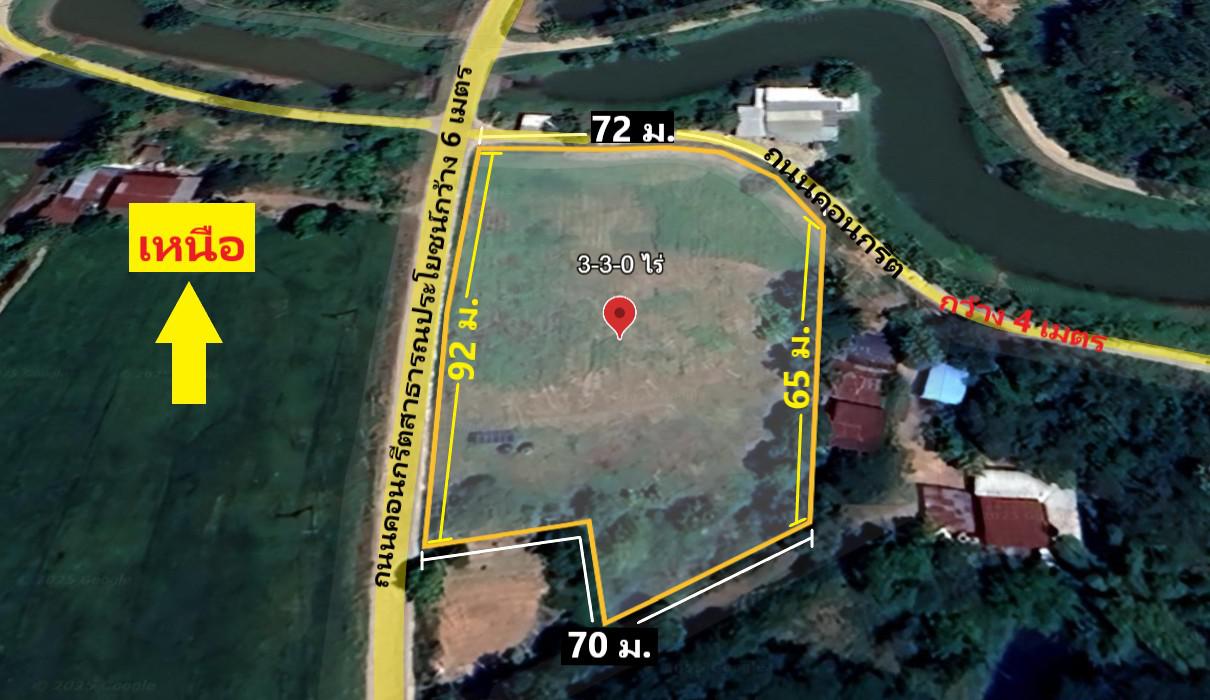 ขายที่ดินตำบลเมืองปัก อำเภอปักธงชัย นครราชสีมา 3-3-0 ไร่ เอกสารโฉนด นส.4 จ ที่ดินติดถนนคอนกรีต 2 ด้าน ด้านหน้าติดถนนคอนกรีต(6 เมตร)กว้าง 92 เมตร ด้านข้างติดถนนคอนกรีต(4 เมตร)กว้าง 72 เมตร ใกล้คลอง ที่ดินอยู่ที่หมู่บ้านโรงนา ใกล้วัดโพธิ์ทอง ห่างถนนลาดยางบ้านดู่เพียง 1.1 กิโลเมตร สูงกว่าระดับน้ำทะเล 200 เมตร