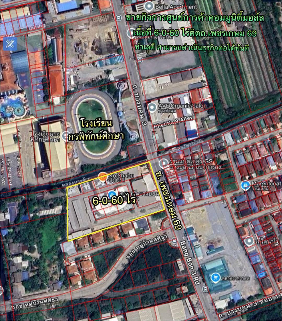 R68-024ขายกิจการศูนย์การค้าคอมมูนิตี้มอล์ลบนเนื้อที่ 6-0-60 ไร่ติดถนนเพชรเกษม 69 ทำเลดี ขายพร้อมสิ่งปลูกสร้างที่สามารถดำเนินธุรกิจต่อได้เลย