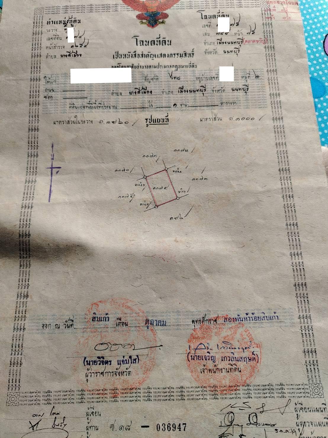 เอกสารสิทธิครอบครอง โฉนดครุฑแดง นส.4 จ. หมายเลขโฉนด XX775