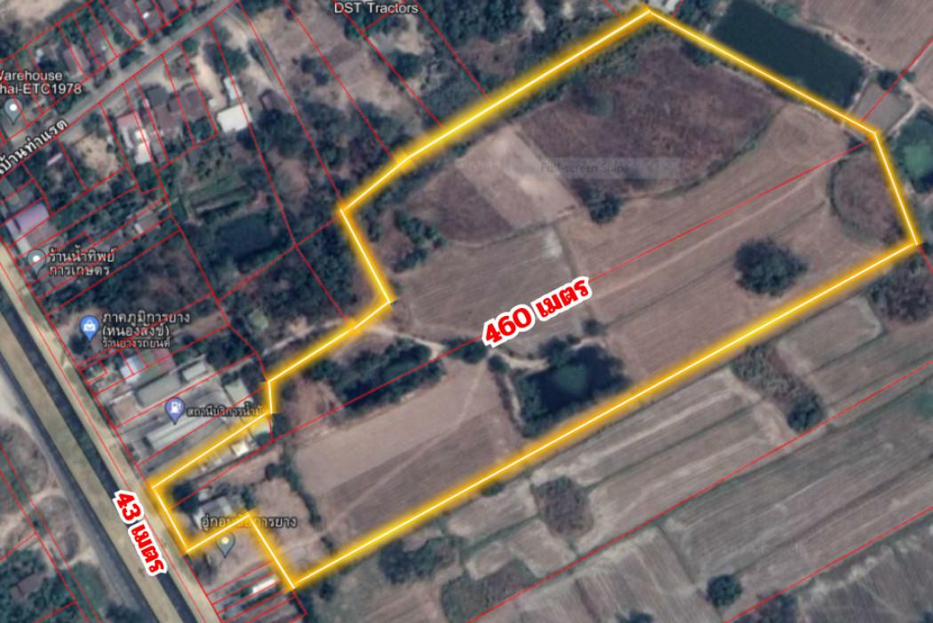 หน้ากว้างติดถนนประมาณ 43 เมตร ลึกประมาณ 460 เมตร