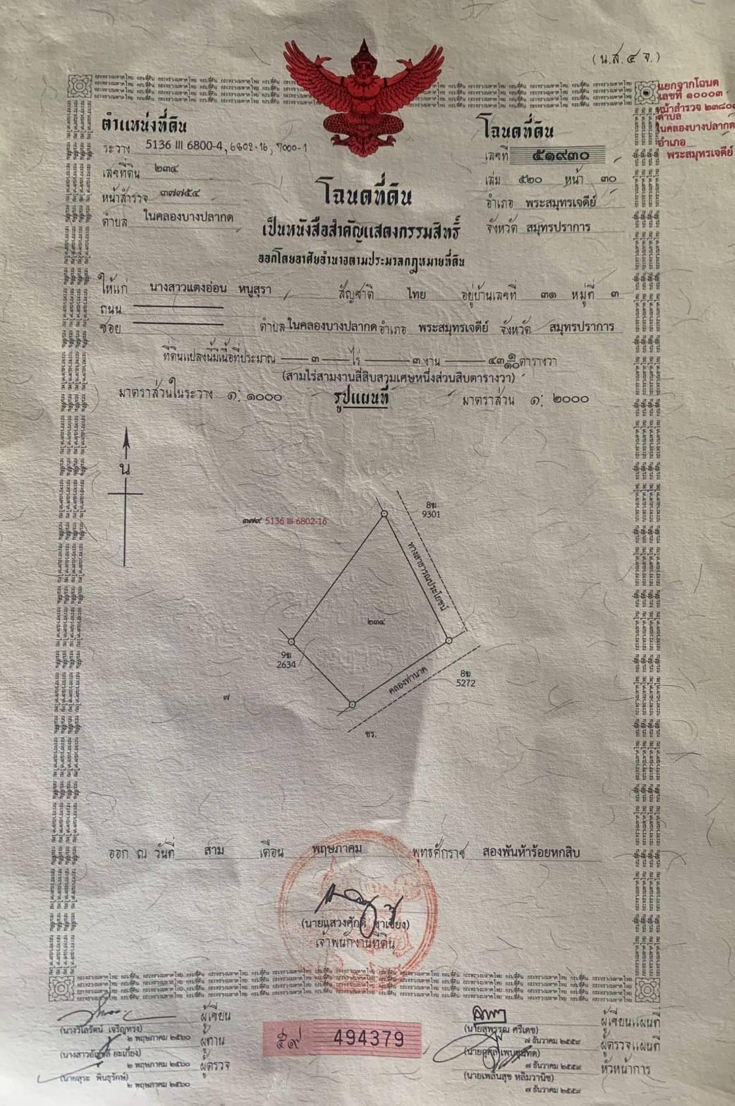 โฉนดลอย*ขอทำยอดซื้อไปขายกลับ 16 ล้านบาท ราคาประเมินจากกรมที่ดิน 23ล้านกว่า * เลขที่โฉนด 51930 เนื้อที่ 3ไร่ 3 งาน 43ตรว