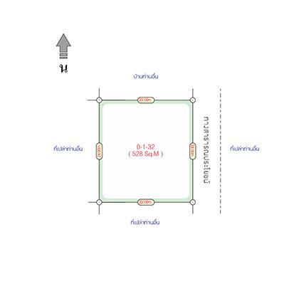 เนื้อที่ขนาด 132 ตร.วา โฉนดครุฑแดง ( นส4.จ ) มีเพื่อนบ้านติดกัน