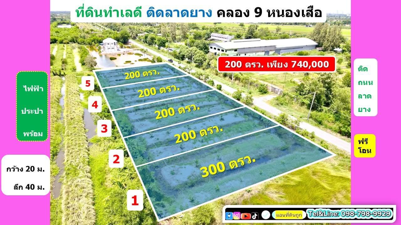 ที่สวยทำเลดี ติดถนนลาดยาง #ที่ดินคลอง9 รังสิต ปทุมธานี 200 ตรว. เพียง 740,000.-