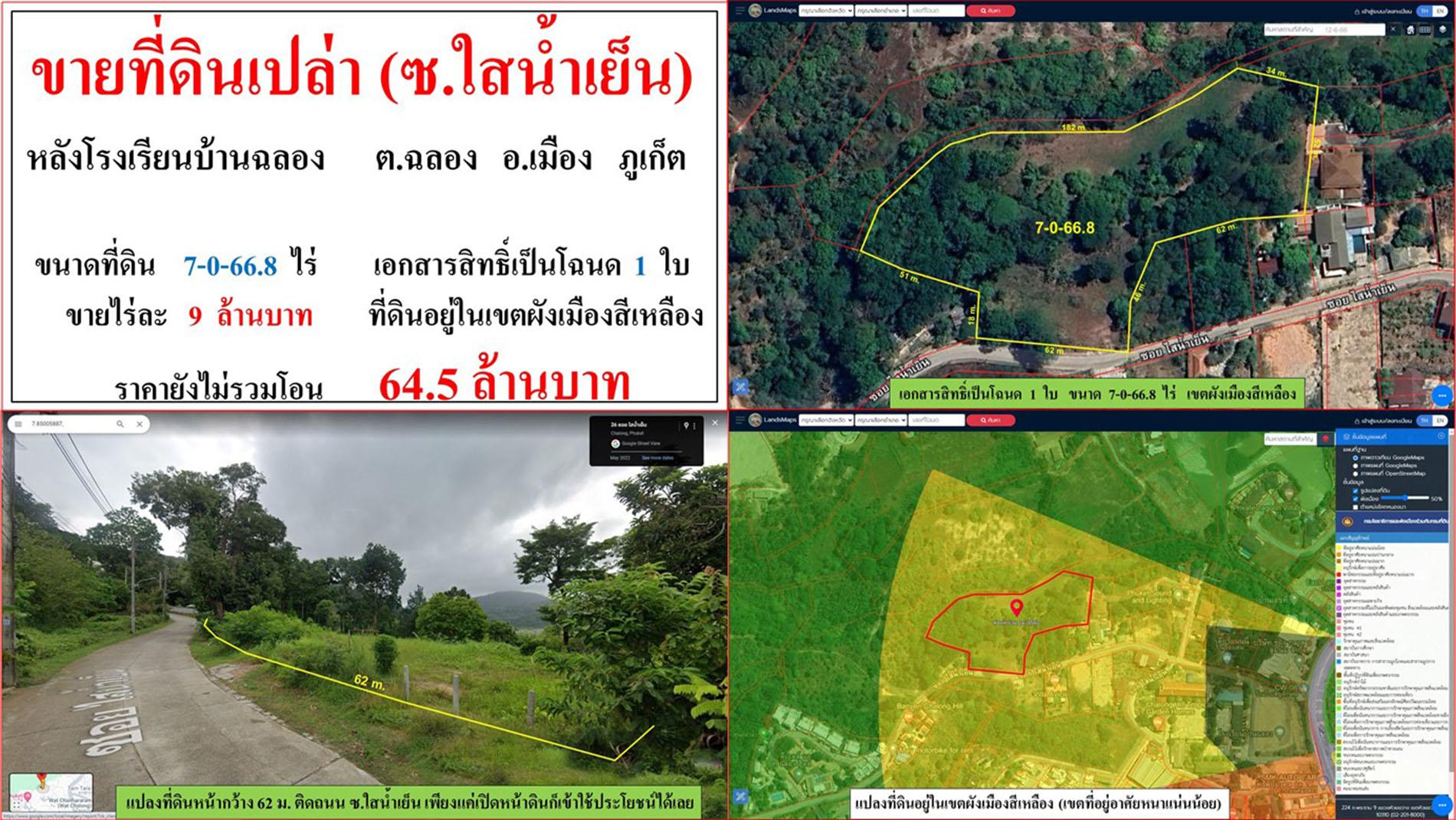 ขายที่ดินเปล่า ขนาด 7-0-66.8 ไร่ ซ.ใสน้ำเย็น หลังโรงเรียนบ้านฉลอง ต.ฉลอง อ.เมือง ภูเก็ต