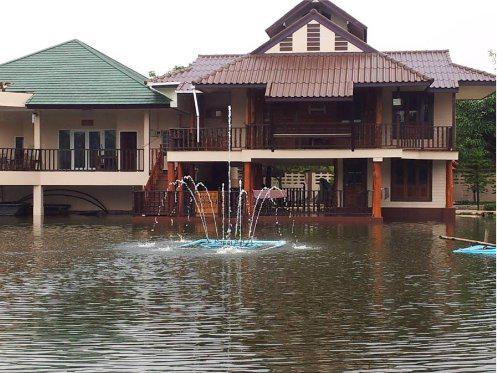 หลังที่สองเป็นบ้านครึ่งตึกครึ่งไม้ มีเรือนกาแฟริมน้ำ มีศาลาริมน้ำ มีบ่อน้ำหน้าบ้านขนาดประมาณ 1 ไร่ มีปลาหลายหมื่นตัว ปลูกสวนผลไม้และต้นไม้ใหญ่เกือบเต็มพื้นที่ หน้าบ้านติดคลอง หลังบ้านติดคลอง ออกแบบวางผังฮวงจุ้ยไว้ดีอย่างดี พร้อมบ้านเลขที่มงคล