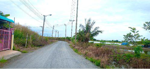 ที่ดินเป็นรูปสี่เหลี่ยม ด้านหน้าติดถนนเลียบคลองบางบ่อ หน้ากว้างติดถนนประมาณ 90 เมตร ด้านข้างติดถนนสาธารณะ ยาวประมาณ 375 เมตร