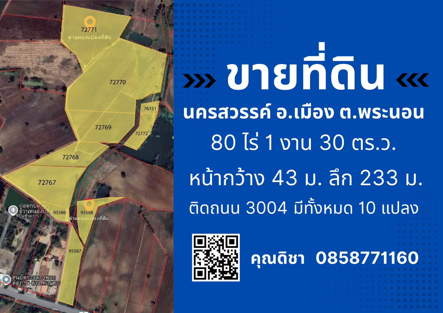 ขายที่ดิน 80 ไร่ 1 งาน 30 ตารางวาตำบล พระนอน อำเภอ เมืองนครสวรรค์ จังหวัดนครสวรรค์
