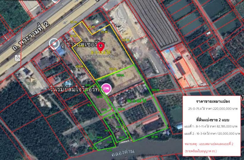 ขายที่ดินพร้อมรีสอร์ท 25-0-75.4 ไร่ (แบ่งขาย) ติดถนนพระรามที่ 2 จ.สมุทรสงคราม