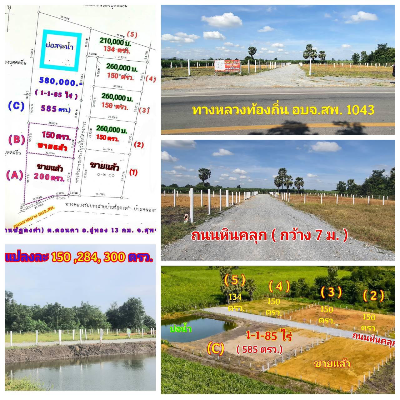 (โฉนด) ที่ดิน 224 ตรว. (พร้อมถม) เหมาะที่อยู่อาศัย หน้าติดถนนลาดยาง คลองน้ำ ไฟฟ้า น้ำประปา (พร้อมใช้) ม.10 ต.ดอนคา อ.อู่ทอง จ.สุพรรณบุรี