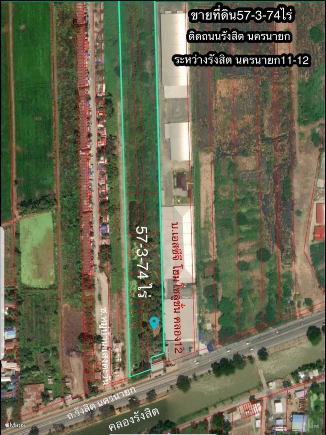 ที่ดิน57ไร่ติดถ.รังสิตค11 ขายที่ดิน57-3-74ไร่ (23,174ตรว) ทำเล ติดถนนรังสิต นครนายก ระหว่างรังสิต นครนายกคลอง11-12 -ที่ดินติดกับบริษัท เอสซีจี โซลูชั่นคลอง12