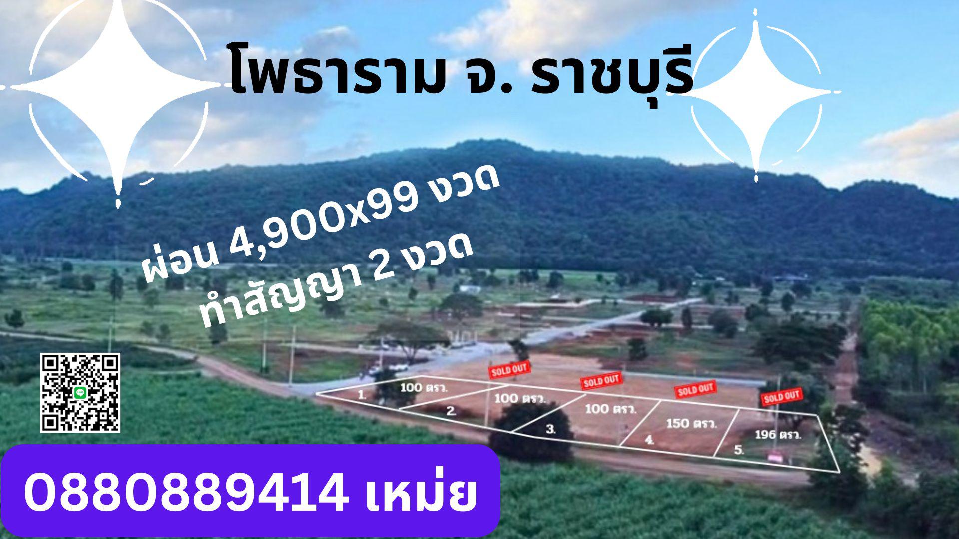 ที่ดิน โพธาราม จ.ราชบุรี ติดถนนลาดยาง ขนาด 100 ตร.วา ผ่อนได้