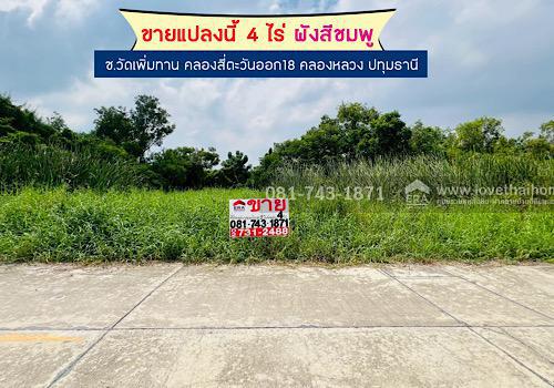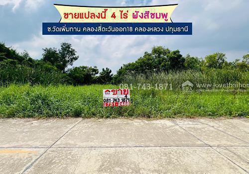ขายที่ดิน คลองหลวง ซ.วัดเพิ่มทาน คลองสี่ตะวันออก18 พื้นที่ 4 ไร่ผังสีชมพู แบ่งขายได้ ที่ดินอยู่ใกล้ถนนเลียบวงแหวน