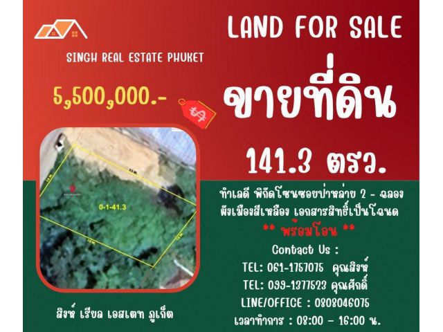 ** LAND FOR SALE ** ขนาดที่ดิน 141.3 ตรว. ( ซอยป่าหล่าย 2 - ฉลอง )