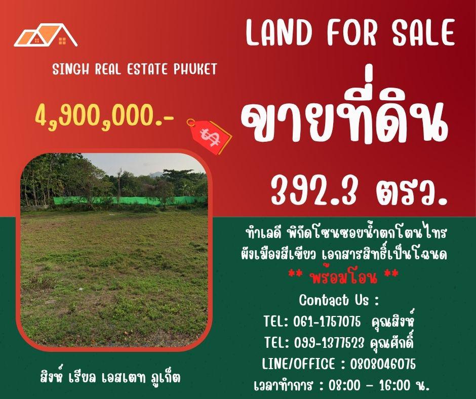 ** LAND FOR SALE ** ขนาดที่ดิน 392.3 ตรว. ( ซอยน้ำตกโตนไทร - เทพกระษัตรี )