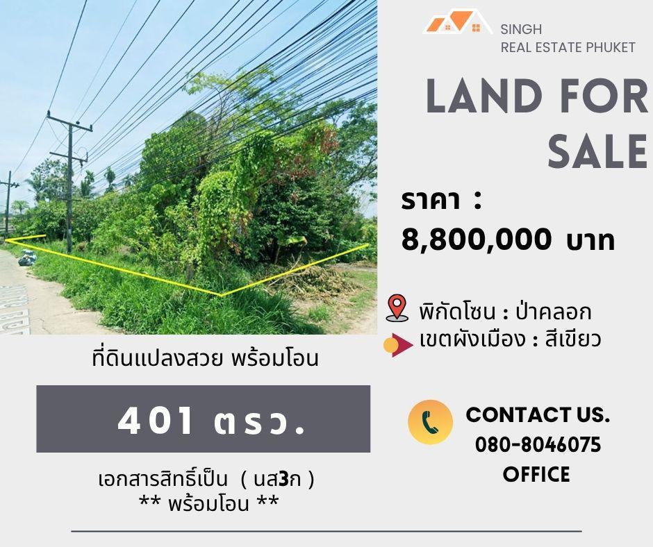 ** LAND FOR SALE ** ขนาดที่ดิน 401 ตรว. ( ซอยลุ่มไทร - ป่าคลอก )