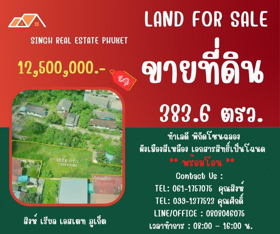 ** LAND FOR SALE ** ขนาดที่ดิน 383.6 ตรว. ( ซอยใสน้ำเย็น - ฉลอง )