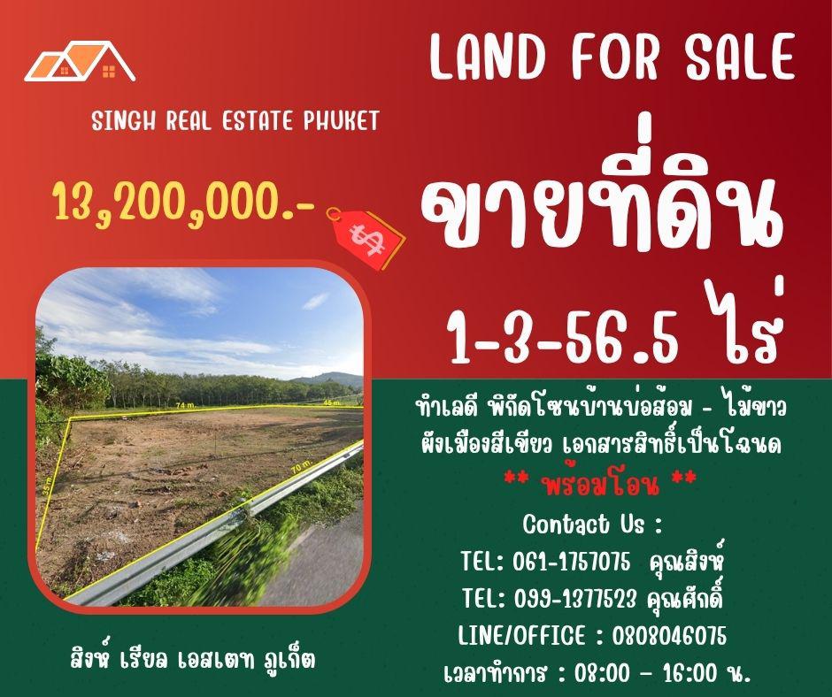 ** LAND FOR SALE ** ขนาดที่ดิน 1-3-56.5 ไร่ ( บ้านบ่อส้อม - ไม้ขาว )