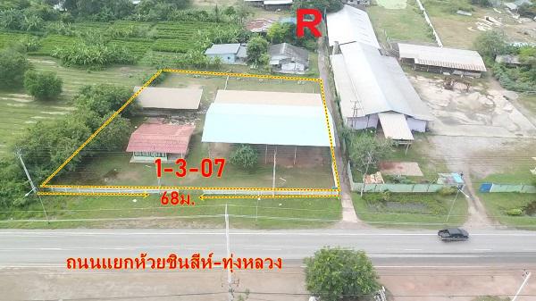 เสนอขายที่ดินพร้อมสิ่งปลูกสร้าง เนื้อที่ 1 ไร่ 3 งาน 7 ตารางวา หน้ากว้าง ติดถนนแยกห้วยชินสีห์-ทุ่งหลวง 68 เมตร