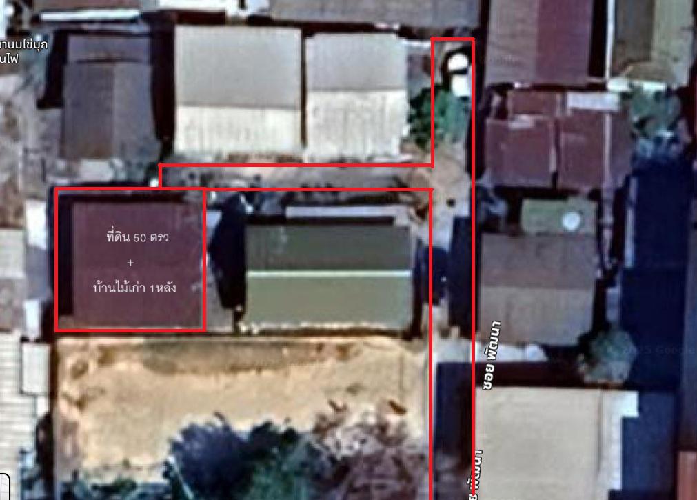 ขายที่ดิน 50 ตรว. ที่ดิน+พร้อมบ้านไม้เก่าครึ่งไม้ครึ่งปูน 1 หลัง