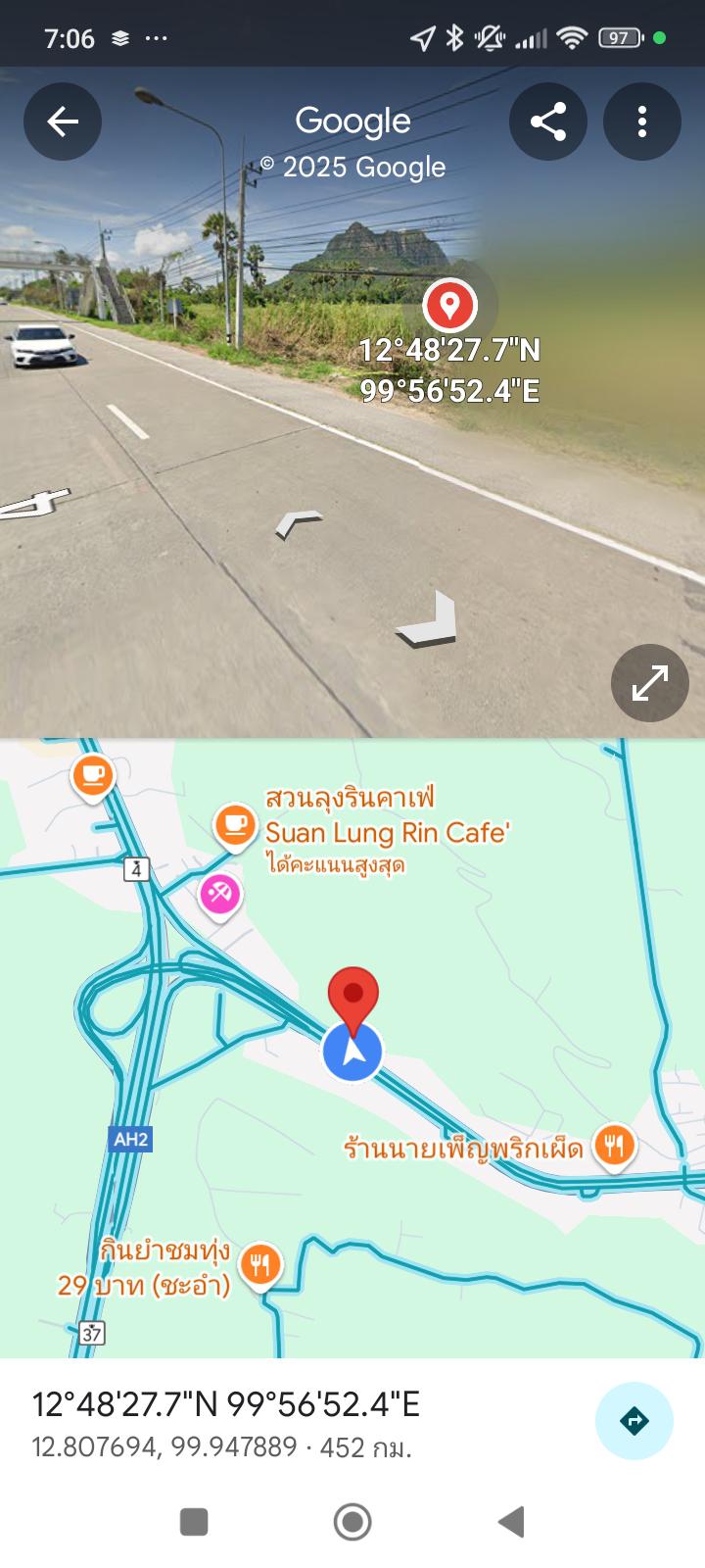 ติดถนนเพชรเกษม เหมาะทำธุรกิจ ด้านหน้าที่ดินกว้าง 240 เมตร ด้านหลังเป็นภูเขา