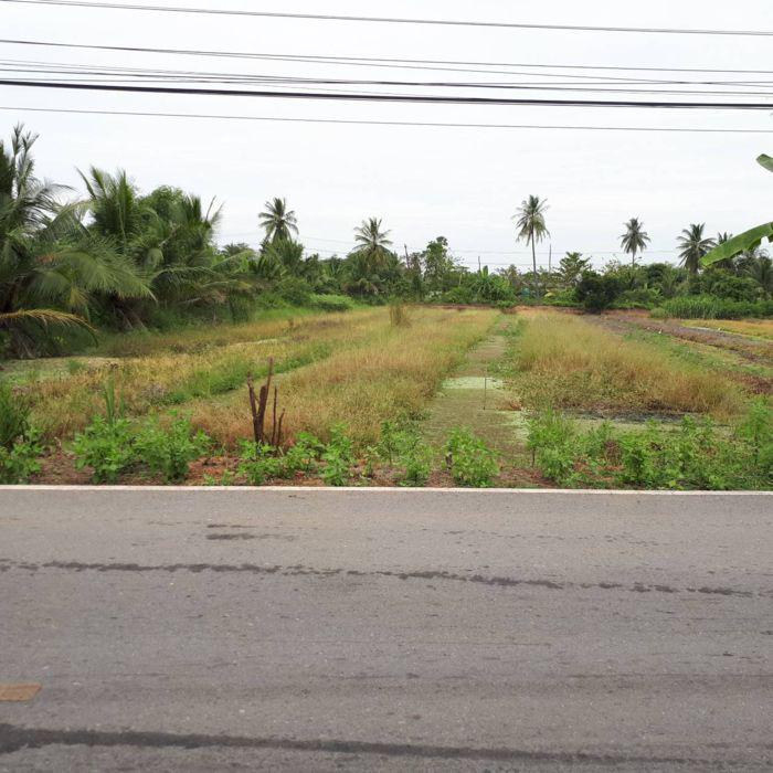 ปัจจุบันเป็นที่ร่องสวน ว่างเปล่า ที่ดินติดถนนลาดยาง2 ด้าน ด้านหลังติดคลอง 1ด้าน