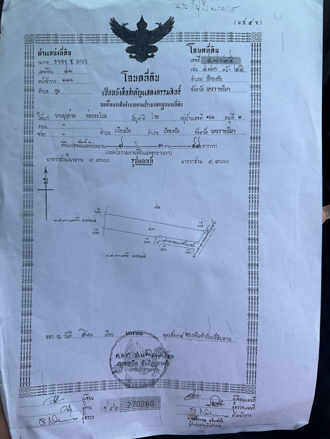 ขายที่โฉนด ต.ตูม อ.ปักธงชัย8ไร่3งาน48ตรว.ขายไร่ละ290,000บาท ติดถนนคอนกรีต