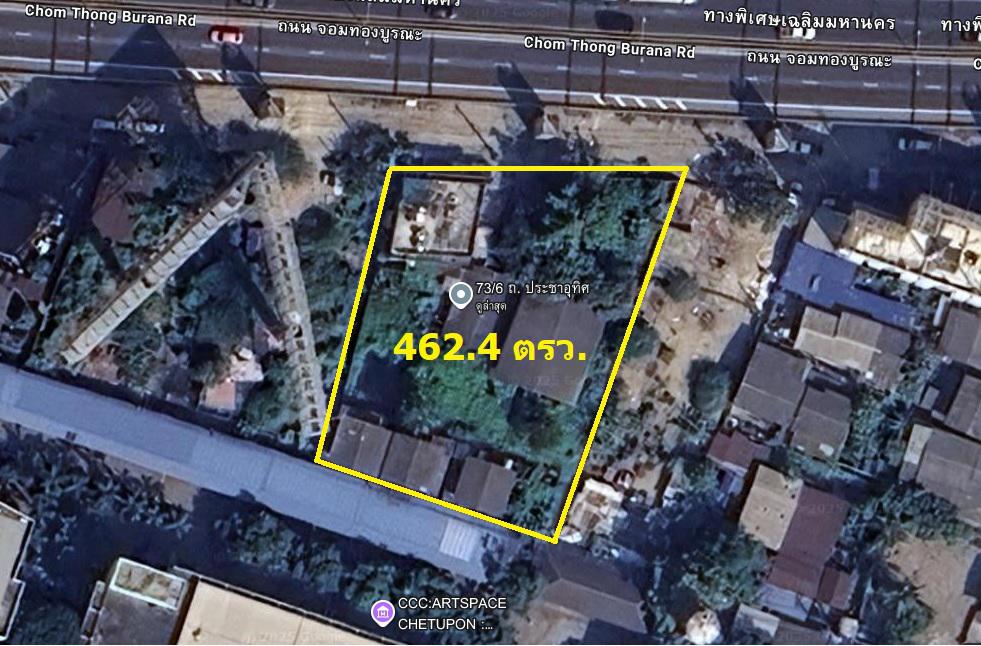 ขายที่ดิน 462 ตรว ติดทางด่วนพิเศษเฉลิมมหานคร ถนนจอมทองบูรณะ ราษฎร์บูรณะ กทม.