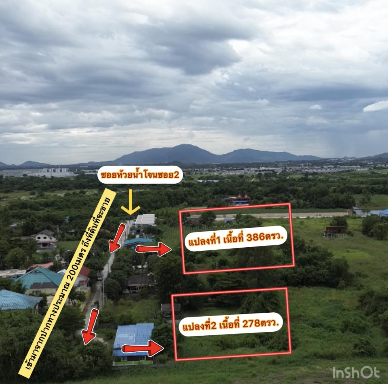 แปลงแรก 386 ตรว. แปลงที่สอง 278ตรว. ฝตรว.ละ 8,000 บาท ต.บ้านบึง อ.บ้านบึง จ.ชลบุรี
