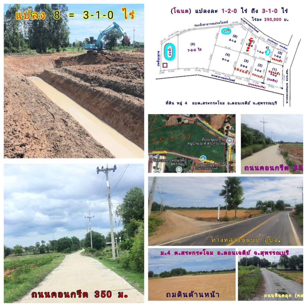 (โฉนด) ที่ดิน 1.5,2,3 ไร่ๆละ 290,000 บ. ขุดบ่อ ถมดิน สวนทำโคกหนองนา (ถนนลาดยาง คอนกรีต 3 ด้าน) ไฟฟ้า น้ำประปา ม.4 ต.สระกระโจม อ.ดอนเจดีย์ จ.สุพรรณบุรี