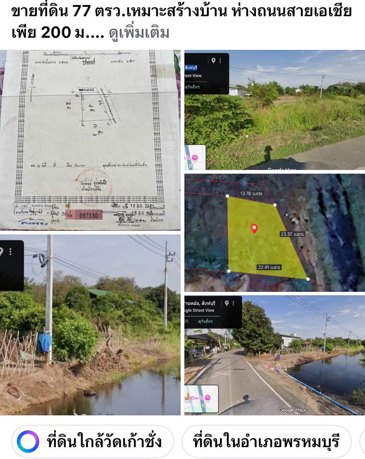 ขายที่ดิน 77 ตรว.เหมาะสร้างบ้าน ห่างถนนสายเอเชียเพีย 200 ม.