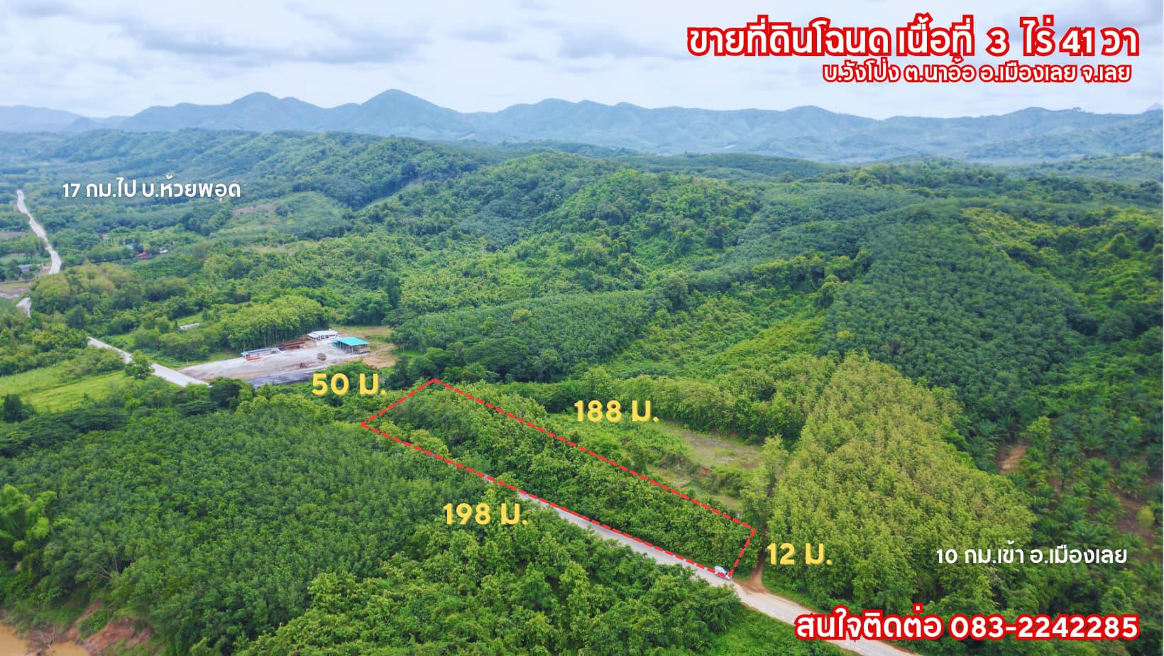 ️ รายละเอียด ติดทางหลวงชนบท สายภูบ่อบิด - ห้วยพอด วิวภูเขา บรรยายกาศเหมาะทำบ้านพักตากอากาศ หน้ากว้าง 198 เมตร ลึก 50 เมตร
