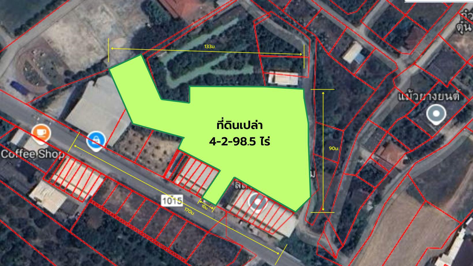 ขๅeที่ดิน 4 ไร่ 3งาน ถนนจามเทวีลำพูน ต.ริมปิง อ.เมืองลำพูน