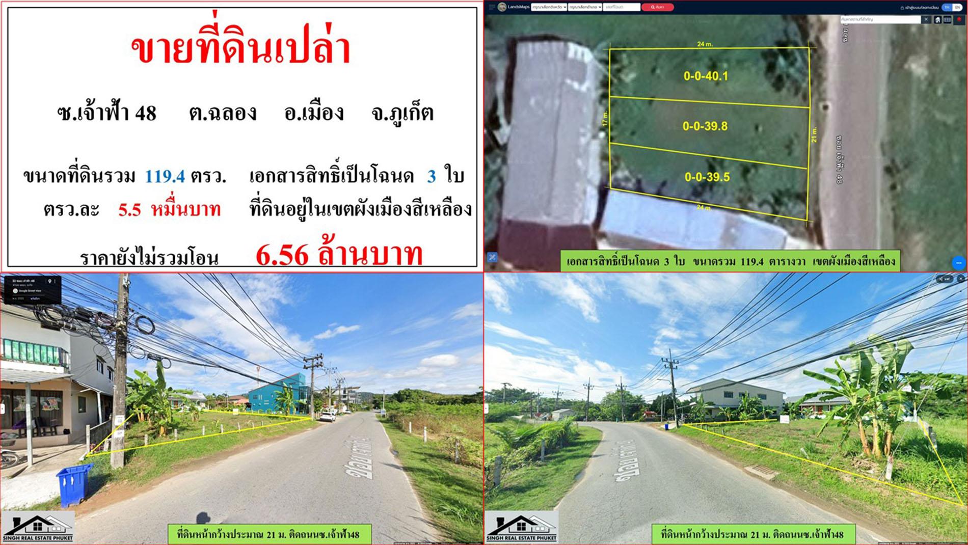 ขายที่ดินเปล่า ขนาด 119.4 ตรว. ซ.เจ้าฟ้า 48 ต.ฉลอง อ.เมือง ภูเก็ต