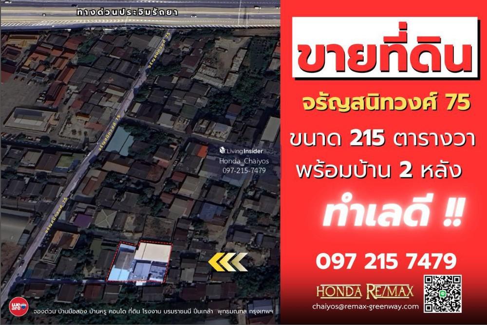 ขายบ้าน จรัญสนิทวงศ์ 75 ขนาด 215 ตารางวา พร้อมบ้าน 2 หลัง ทำเลดีมาก